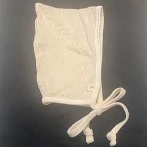 Keep your little one snug with this cozy cream bonnet, perfect for any outing.