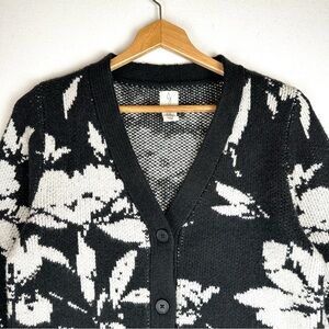 Joie Floral V-Neck Button Cardigan Sweater Abstract