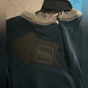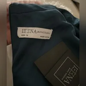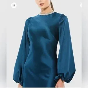 MWT IENNA Mac Duggal Blue Beaded High Neck Bishop Sleeve Satin Gown Size 14