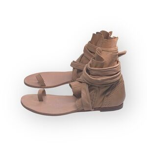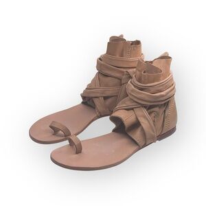 Free People 𖦹 Delaney Wrap Boot Toe Ring Leather Sandal 𖦹 Khaki 𖦹 39 8M 8.5M 9M