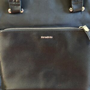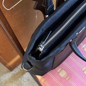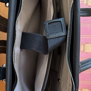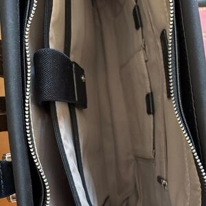 Stylish black tote bag with silver zippers. Perfect for everyday use.