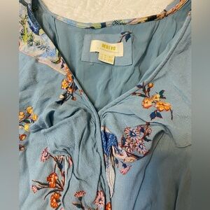 Anthropologie Maeve Sky Blue Floral Wrap Midi Dress