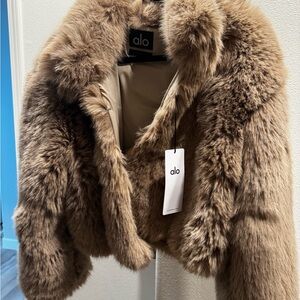 Gorgeous Alo cropped faux fur jacket in oat color. This would bean amazing jacket for the snow or out and about elegance. It’s super warm and cozy. New with tags in excellent unused condition. Retails for $375 tax included.