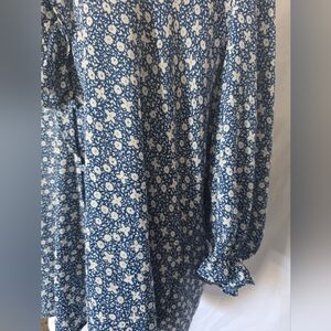 Lauren Ralph Lauren Blue Floral Ruffle Crepe Blouse Women's Size Large