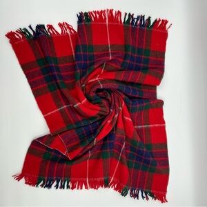 Wool Tartan Plaid Stadium Blanket Throw Fringe Red Green Blue White 34”x55”