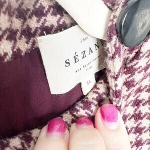 Sezane Erza Burgundy Mini Houndstooth Wool Button Shoulder Mini Dress EU 34 US 2