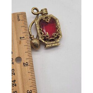 VTG Figural Ornate Perfume Bottle Pin Brooch Gold Tone Red Glass Faceted Stone