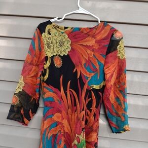 Vintage 90s Gala Collection Size L Vibrant Multicolor Maxi Dress 100%silk