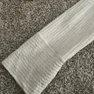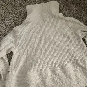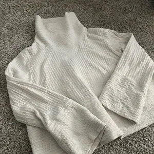 Ribbed white drifit sweater from lululemon. Been worn a number of times but still has a lot of life left! No major signs of wear.