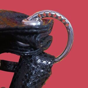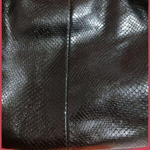 This Brighton handbag combines a sleek snake-embossed leather exterior with a stylish braided strap and satin interior, offering both elegance and functionality.is in great condition Only the silver heart part has scratches from smoke and pet free home