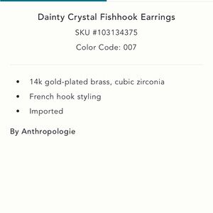 New! Anthropologie 14K Gold Plated Dainty Fish Hook Earrings NWT