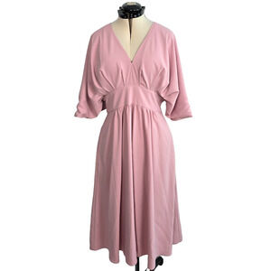 Alexia Admor Midi Party Dress Women's 14 Dusty Pink Deep V-Neck Ruffle