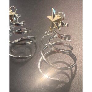 Silver Christmas Tree Spiral Earrings With Gold Star