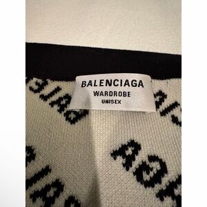 Excellent condition BALENCIAGA black and white logo cardigan in size 3 (which would be a size Large). It is oversized fit and unisex. Features two front pockets, and Balenciaga logo buttons. Measures approximately: