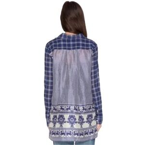 Johnny Was M 3J Workshop Lana Scarf Shirt Button Front Plaid