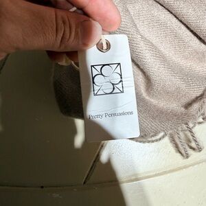 Luxurious beige wrap with delicate fringe. Ideal for layering.
