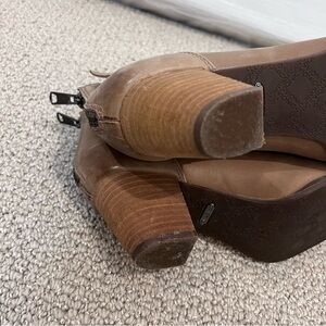 VIONIC Rory Leather Buckle Strap Ankle Booties Boots Tan Women Size 7.5 322RORY, Preowned condition, worn on soles, heels, scuffing on toes and throughout shoes, pictures provided