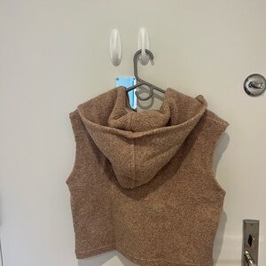 Stay warm and stylish with this tan fleece vest, perfect for layering. 80% merino wool
