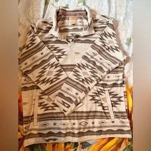 Stay stylish and warm with this women's jacket featuring an Aztec pattern in cream and brown. Perfect for any casual outing.