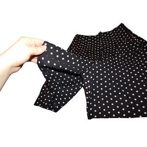 * shorts are sold black with medium-sized white polka dot print all over, zips up in the back (zipper is approx 7" long). No flaws present.