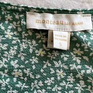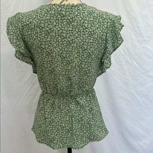 Green calico wrap v neck babydoll ruffled sleeve top small Monteau Los Angeles