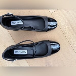 Steve Madden Eli Black Block Heel with patent tip - ankle strap