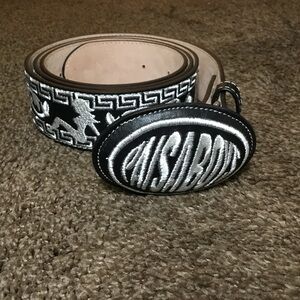 Men's Black and Silver Embroidered Belt