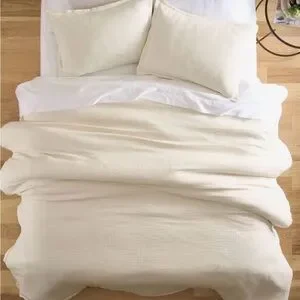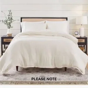 Experience luxury with this elegant cream comforter. Perfect for adding a touch of sophistication to your bedroom decor.