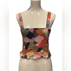 Vibrant and stylish, this colorful patchwork top is perfect for any occasion. The multicolor design adds a playful touch to your wardrobe.