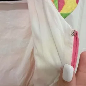 The Lilly Pulitzer floral dress in pink and yellow is a stylish and elegant choice for women size 0. With a shift style and short dress length, this dress highlights the wearer's curves and complements the vibrant floral pattern. Perfect for occasions where you want to make a statement with your outfit, this dress exudes a feminine and trendy vibe that is sure to turn heads.