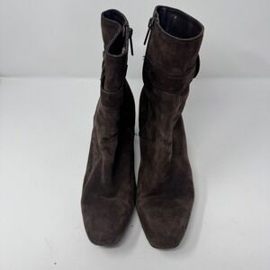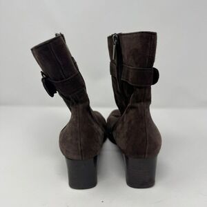 Bandolino Women Brown Suede Buckle Ankle Boots Block Heel Zip Up Size 9.5 M