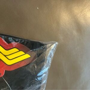 Black t-shirt featuring a bold Wonder Woman graphic with red, gold, and cream accents.