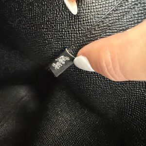 Stylish Coach tote with signature pattern. Black handles and trim. Perfect for daily essentials.