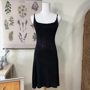 Vintage 90s Y2k Black Glitter Stretch Dress Party Sexy Gothic Witchy Bimbo M