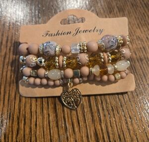 Enhance your style with this elegant gold and cream beaded bracelet set. Perfect for any occasion, this set adds a touch of sophistication to your look.