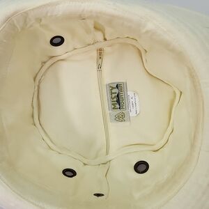 Misty Mountain Bosun Off-white Cotton Canvas Outdoors Hat. Designed with a fold-up brim with snap sides, hidden zip pocket in the circular crown, adjustable headband tie, and grommets for easy ventilation. Misty Mountain Bosun Hats are affordable sun protection, perfect for a hiking trips or long days on the water.