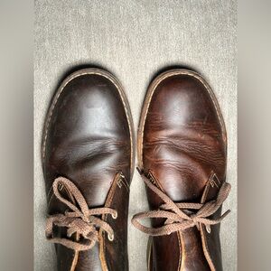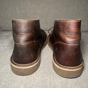 Men’s Clarks Brown Leather Chukka Boots. Genuine leather that has been conditioned but could benefit from some additional cleaning.