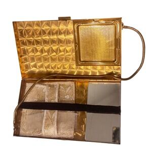 Vintage Mother of Pearl Mosaic Clutch Bag Gold Tone Compact Mirror Purse 1950's