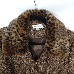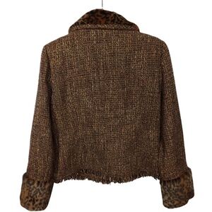 Methode Jacket Womens 12 Brown Blazer Fur Trim Animal Print Business Old Money