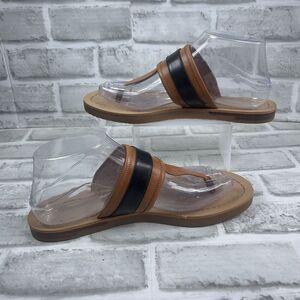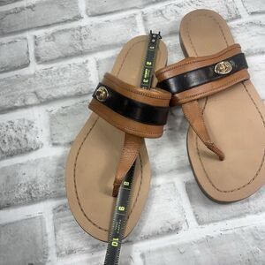Coach Eileen Women's 9.5 Saddle Brown and Black Leather Comfort Thong Flip Flop