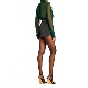 Introducing the Suri Silk Blouse by Retrofete, a sophisticated choice in elegant pine green, perfect for a cocktail party or Thanksgiving celebration. This blouse showcases long sleeves and an alluring solid silk composition. With a classic collar neckline, this piece embodies the maximalist trend, ensuring you stand out in any gathering. Care for this luxurious garment by dry cleaning only.