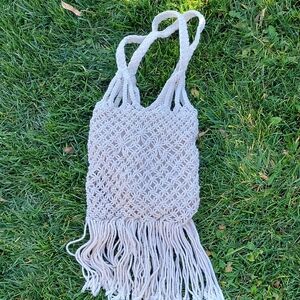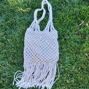 Elevate your style with this handcrafted cream macrame tote bag. Perfect for casual outings, this bag combines elegance and functionality.