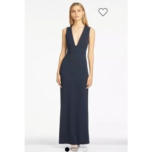 New Sachin & Babi Navy Blue Sleevless Deep V Neck Formal Maxi Gown Dress 10