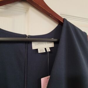 New With Tags Sachin And Babi Size 10 , Navy Blue , Maxi Dress , Evening Gown , Formal , Deep V , Sleeveless, Plunge Neckline , Back Zipper , Back Slit . Length 62 in , Pit to pit 19 in , Waist 32 in . Same Day Shipping/ Next Day .