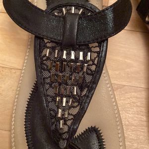 J.J’S Black Lace Jewelled Faux Leather Thong Sandals