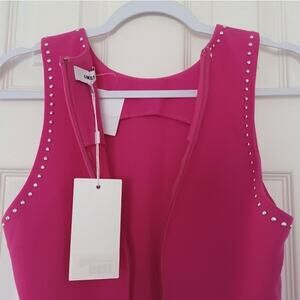 NWT Likely Manhattan sleeveless mini dress in fuchsia with silver studded details. Sold-out style, bodycon silhouette, high neck, studded neckline/armholes, hidden side zipper, unlined.