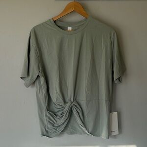 Stylish and effortless Lululemon twist-front T-shirt in a beautiful Jade Grey green shade. This top features a relaxed oversized fit with a flattering twist front detail, making it perfect for casual wear, athleisure looks, or light workouts. Brand new with tags.