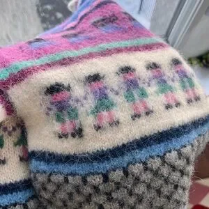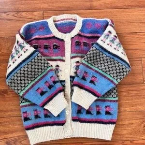 Vintage Handmade in Peru Wool Colorful Patterned Cardigan Sweater