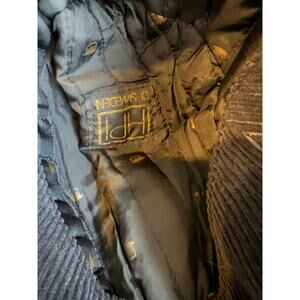 HPI Sweden Genuine Sheared Mink Hat Dark Brown. Very good preowned condition- fur is in excellent shape as is interior of hat, quilted inside with corduroy lining at front inside and leather buckle trim.