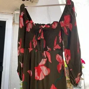 Chic maxi dress with bold floral design. Flowy fit with stylish long sleeves. Ideal for versatile wear.